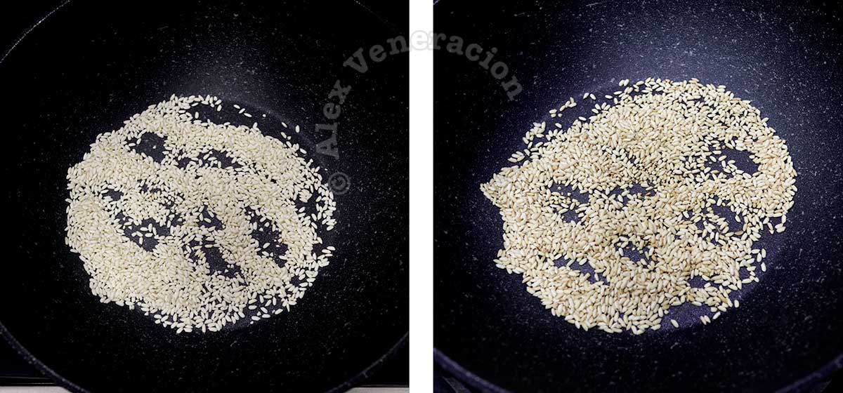 - Grind the toasted rice with a mortar and pestle or a mini food processor until sandy (not flour-y) in appearance.