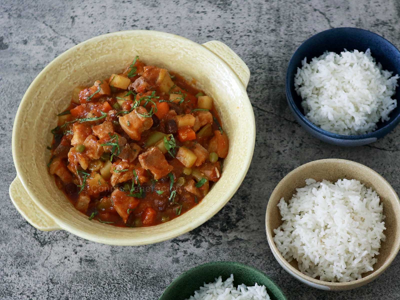 Tip #5. As with any stew, pork menudo tastes even better the next day after reheating. To reheat properly, either steam it or use a wide shallow pan set over low heat. Add more broth if the sauce has dried up. And you will likely need to add more salt because most of the saltiness would have been soaked up by the potato and carrot cubes.